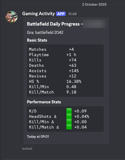 System Headshot Haven wykracza poza podstawowe śledzenie czasu gry, oferując dedykowane narzędzia analityczne dla graczy Battlefield. Dzięki integracji z bazą danych statystyk oraz Discord API, gracze otrzymują dostęp do profesjonalnych metryk bezpośrednio na swoim serwerze Discord – bez konieczności logowania się do zewnętrznych platform czy przełączania aplikacji.